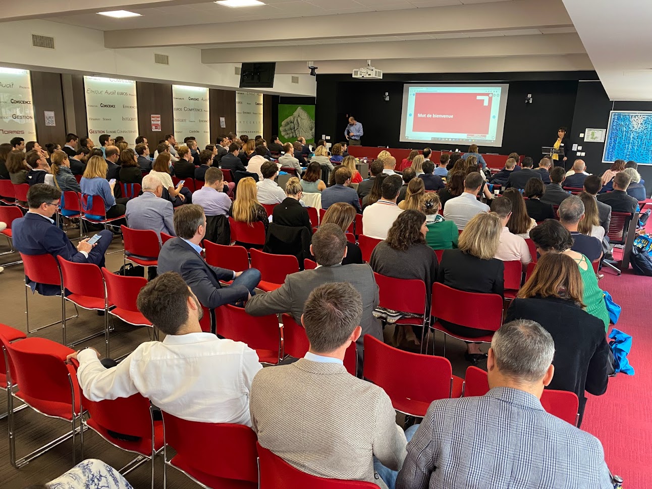 Jeudi 2 juin, l’Ordre Auvergne-Rhône-Alpes a réuni les nouveaux experts-comptables inscrits lors d’une journée spécifique en leur honneur. Cent-vingt participants ont assisté à la présentation de l’Ordre, de son fonctionnement et de ses services, suivie de plusieurs ateliers dont l’un sur la déontologie de notre profession animé par Stéphanie Gresle, Présidente de la Commission Déontologie et Virginie Maureau-Regaldo, Secrétaire Général et Directeur juridique de l’Ordre Auvergne-Rhône-Alpes. Des ateliers pratiques ont également été animés par les élus du Conseil national de l’Ordre. Une édition rythmée cette année de manière très originale par Klaxoon, un outil collaboratif. Chaque participant a ainsi pu interagir en direct. Cette journée est toujours l’occasion d’échanger avec les élus et collaborateurs de l’Ordre, que nous remercions pour leur présence et leur éclairage sur les missions et les actions de notre institution.